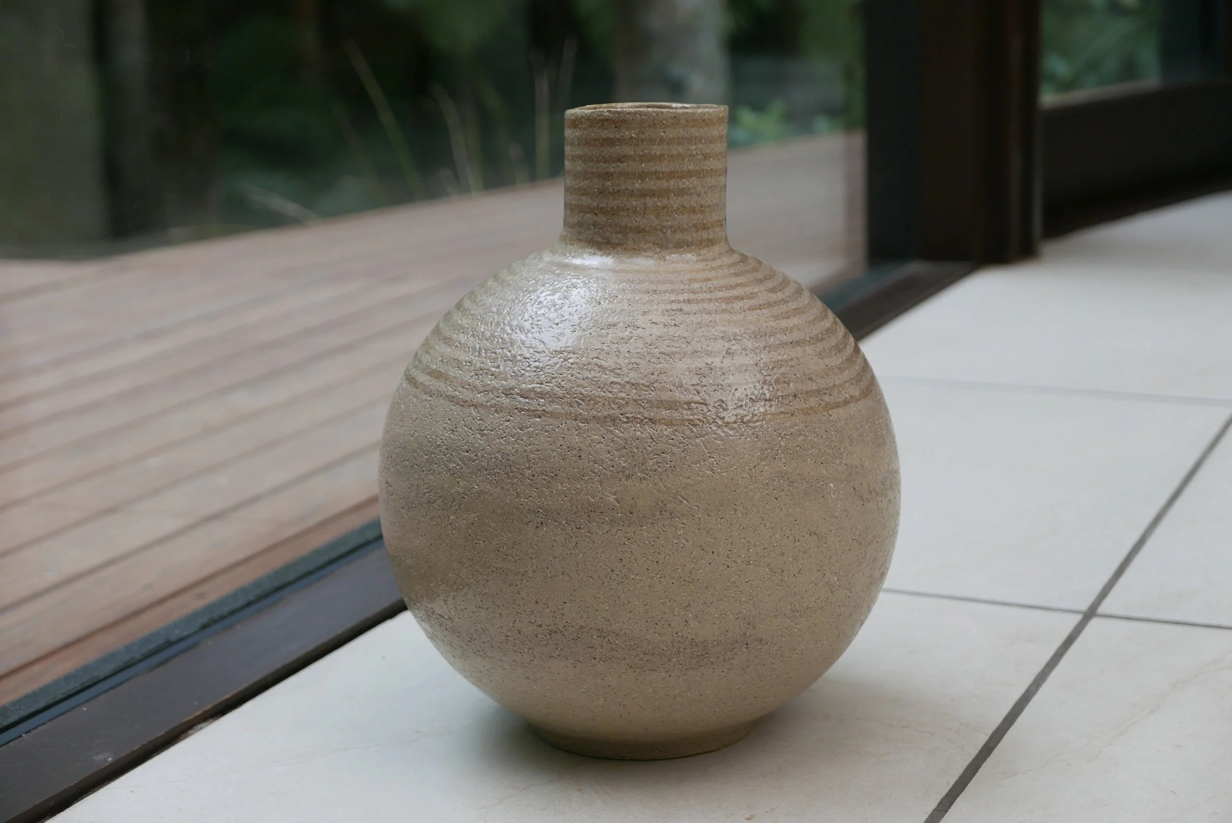 Large Moon Vase. Sculptural stone clay. Smoke x grey stain. H 405mm D 280mm