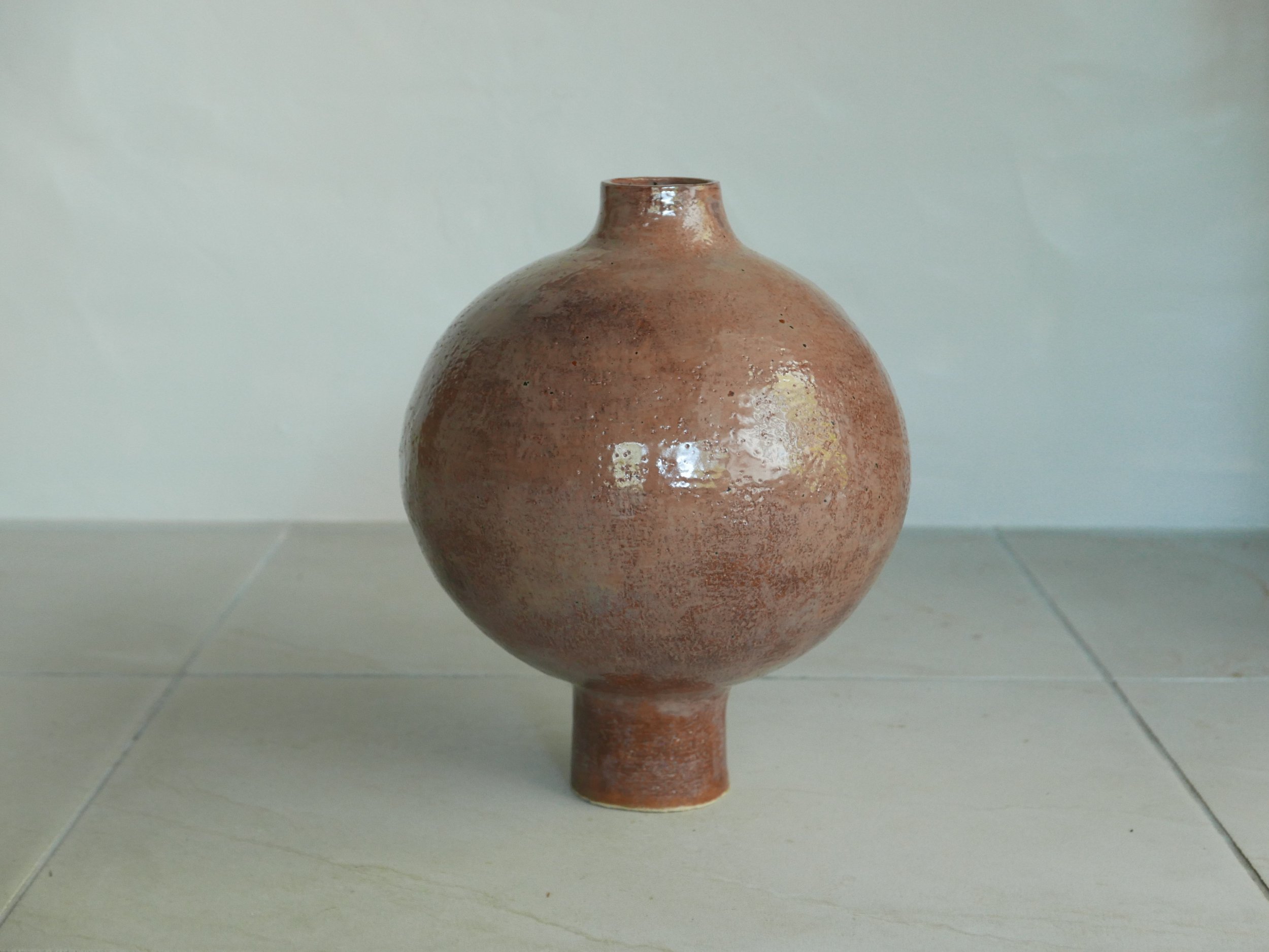 Large Moon Vase.Sculptural Red clay. Maycoshino. H 33cm D 25cm.