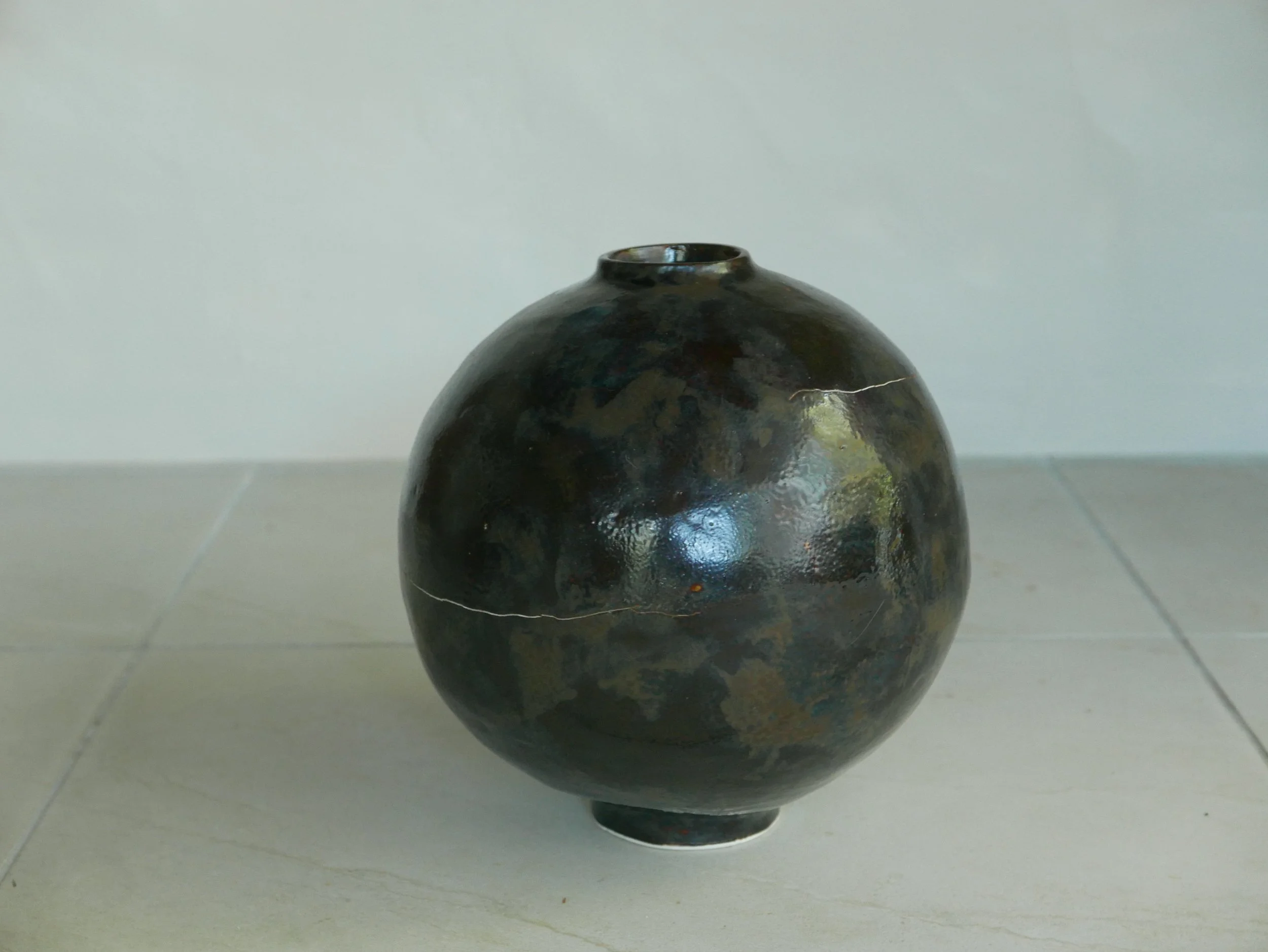 Large Moon Vase. Sculptural stone clay. Green Tea x Root Beer. H 500mm D 250mm.